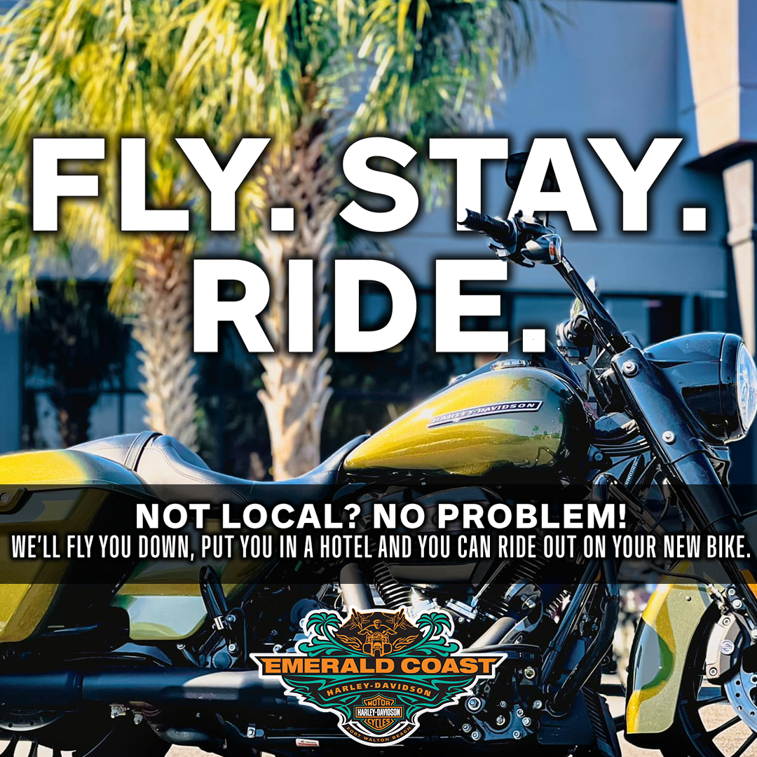 Dreaming of a Harley but not located on the Emerald Coast? No problem. With our Fly. Stay. Ride. program, distance is no obstacle to getting the bike you’ve always wanted.